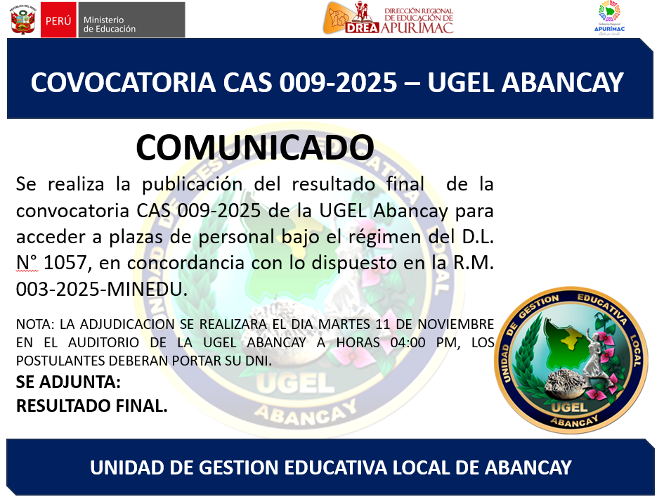 • CONVOCATORIA CAS 009-2025 UGEL ABANCAY