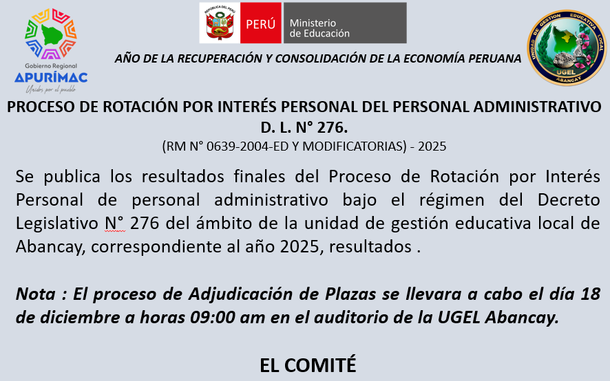 PROCESO DE ROTACIÓN DE PERSONAL ADMINISTRATIVO – D.L. N° 276 RESULTADO PRELIMINAR ROTACION 2025Descarga