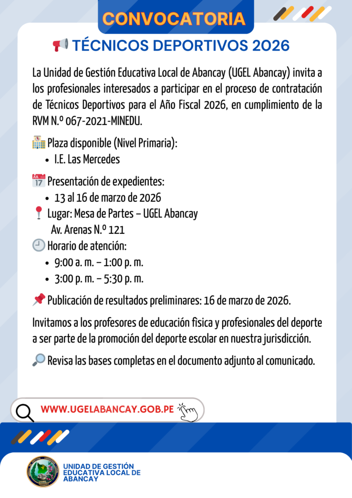 CONVOCATORIA PLAZA DE DIRECTIVOS – ETAPA REGULAR.