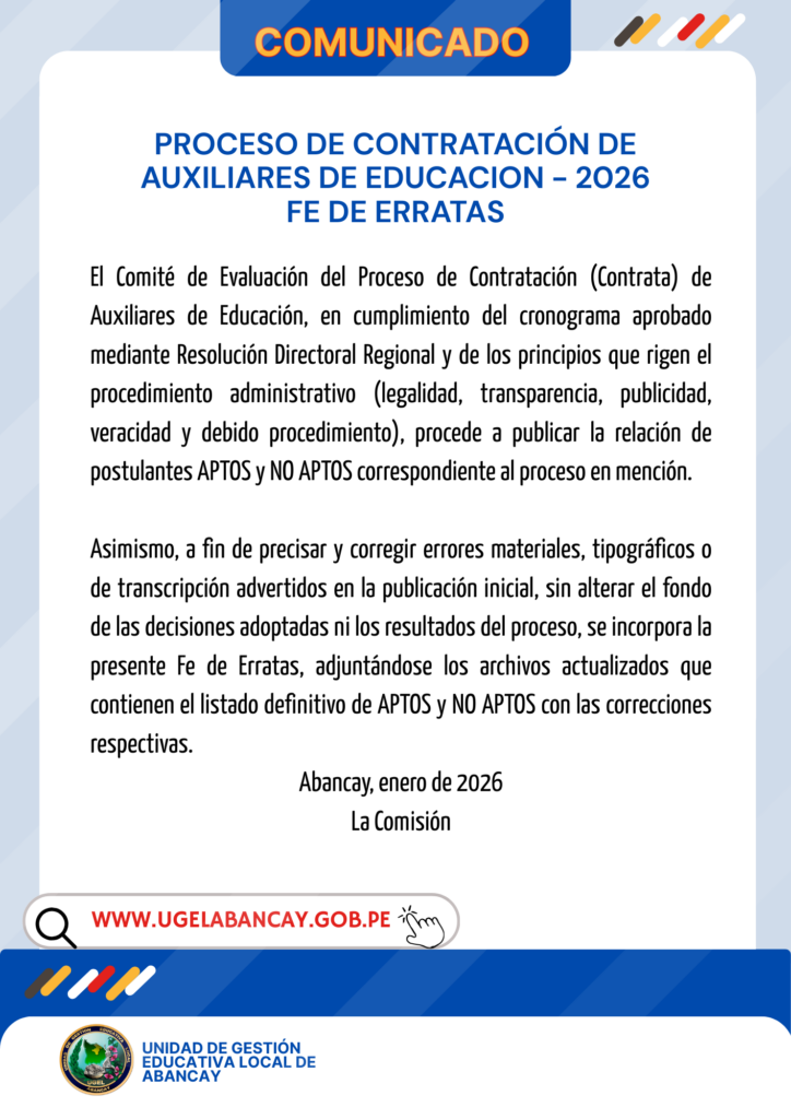 RESULTADO FINAL CAS Nº 02-2021-UGEL Ab./FE DE ERRATAS.