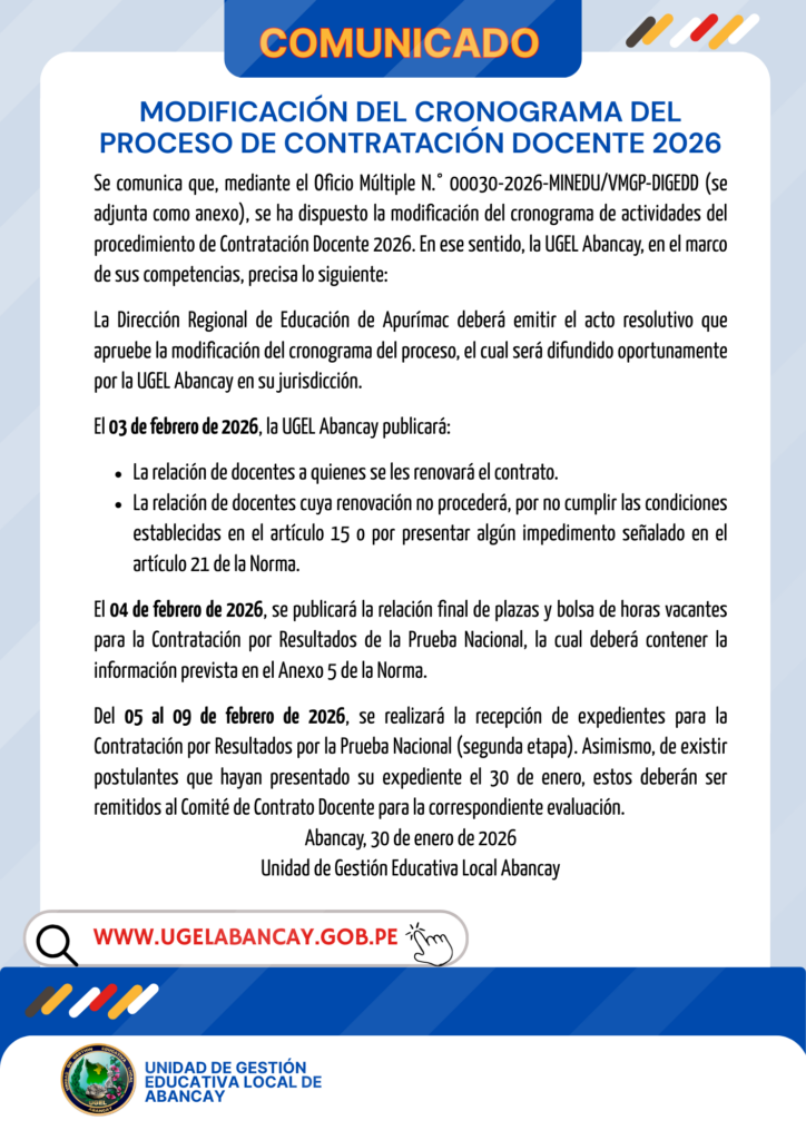 Viernes, 30 del presente se desarrollará la adjudicación de plazas vacantes; a las 10.30 am. a...