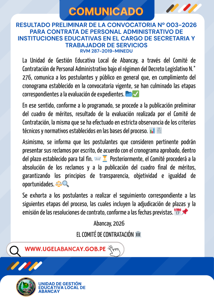 📢 Resultados Preliminares de Evaluación de Expedientes – CONVOCATORIA OFICIAL 2025 DL 276