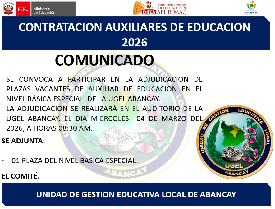 CONVOCATORIA CAS N° 011-2024 UGEL ABANCAY