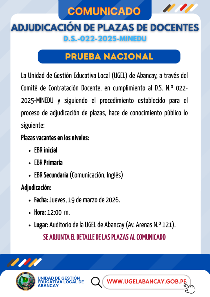 Convocatoria al Acto Público de Adjudicación de Plazas Docentes 2025 – ORDEN DE MÉRITOS PRUEBA NACIONAL.
