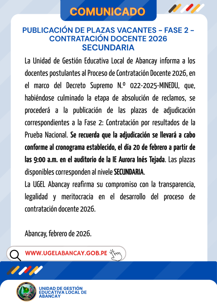 PROCESO DE ENCARGATURA 2023 – PLAZAS VACANTES, CRONOGRAMA Y REQUISITOS.