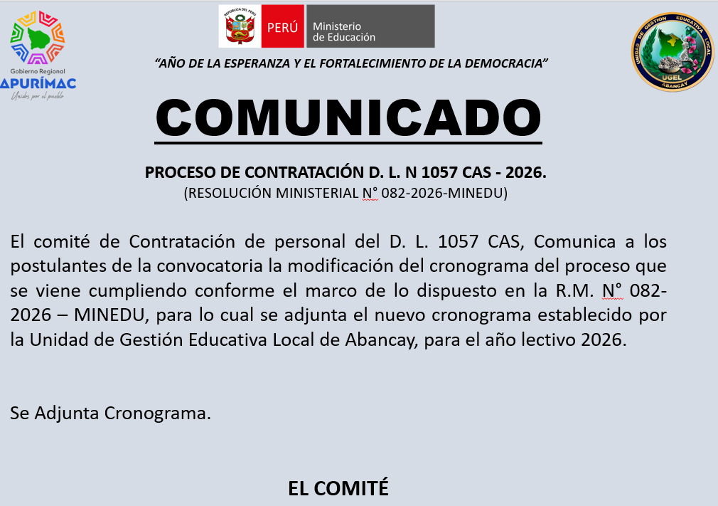 CONVOCATORIA AL CARGO DE SUB DIRECTOR I.E. SECUNDARIA – ETAPA ESPECIAL