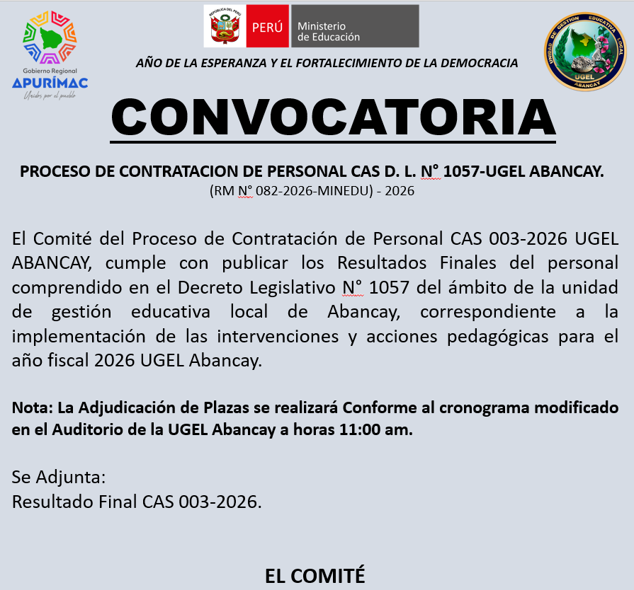 APTOS PARA ENTREVISTA CAS Nº 004-2021-UGEL Abancay.
